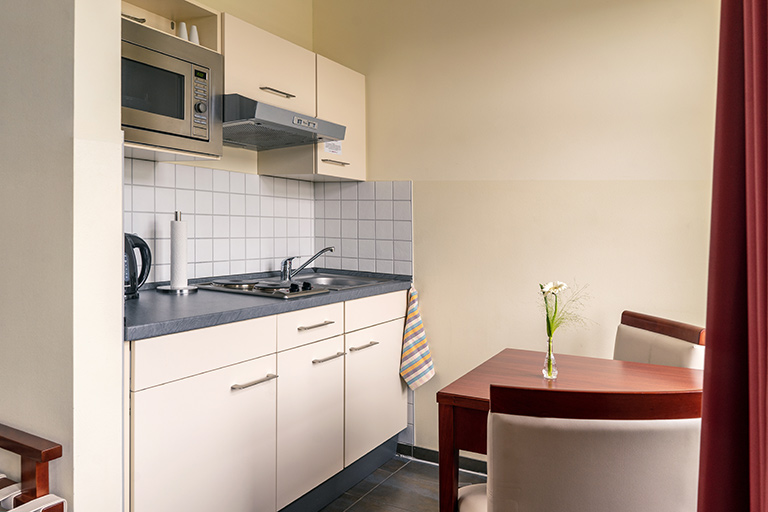 Our hotel has 29 fully equipped one- and two-bedroom apartments. Furthermore, there are five rooms without kitchenette and a room for wheelchair users with the same furnishing. All rooms and apartments are non-smoking, for smokers some apartments with a small balcony are available.